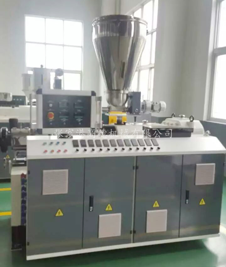 錐形雙螺桿擠出機(jī)是一種高效的混煉、擠出設(shè)備,該機(jī)適合PVC管材的擠出具有剪切速率小,物料不易分解,塑化混煉均勻,質(zhì)量穩(wěn)定,產(chǎn)量高,適用范圍廣,使用壽命長(zhǎng)等特點(diǎn)。配上本公司生產(chǎn)的各種規(guī)格模具和輔機(jī)生產(chǎn)線,就可以直接將PVC粉料制成管材、板材、異型材等不同截面的塑料制品。