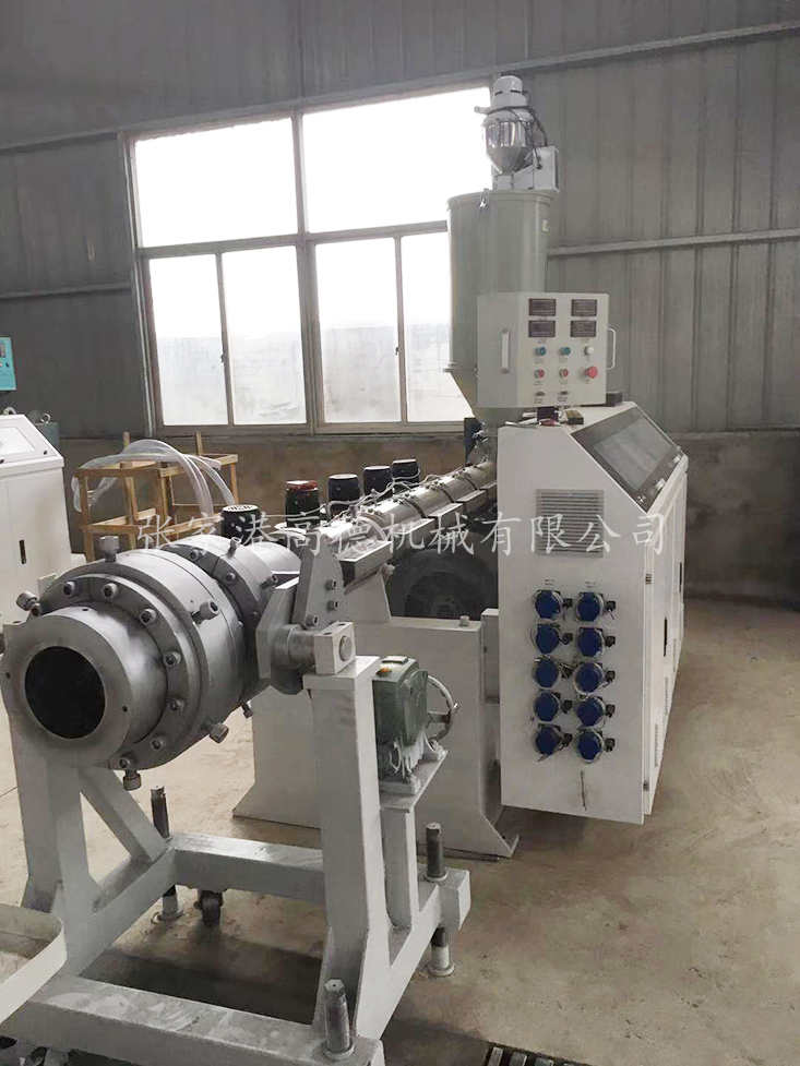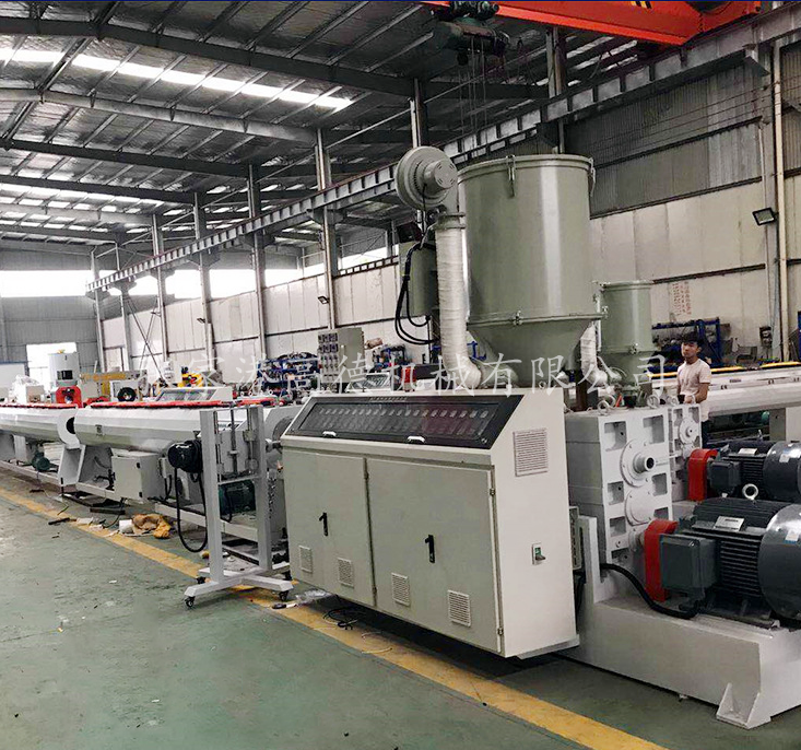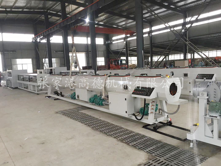 真空定徑箱的特殊設計,可以確保直徑尺寸的穩(wěn)定和圓整度,速度控制系統(tǒng),使牽引速度穩(wěn)定。整條生產(chǎn)線可采用PLC控制,液晶屏幕控制面板,操作簡便??梢耘鋫渖珮藬D出機,使生產(chǎn)的管材有色標線。